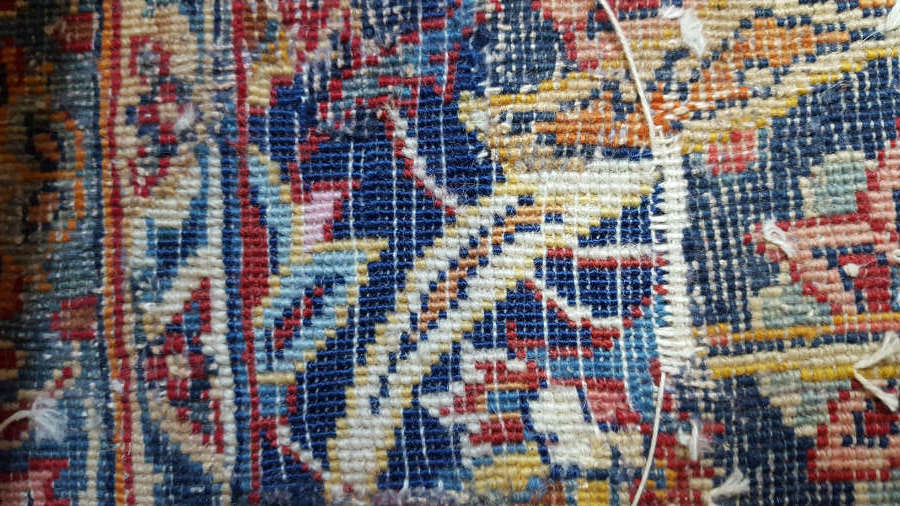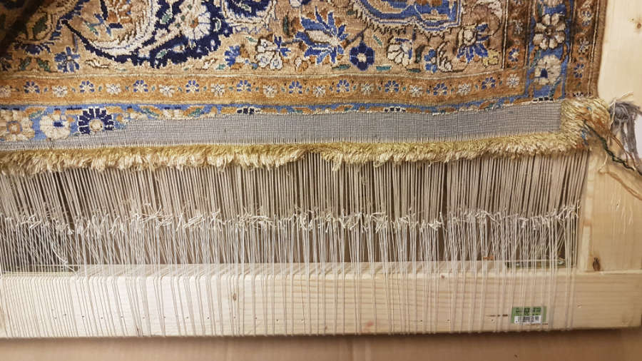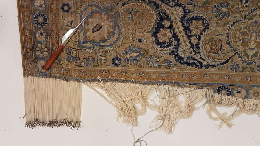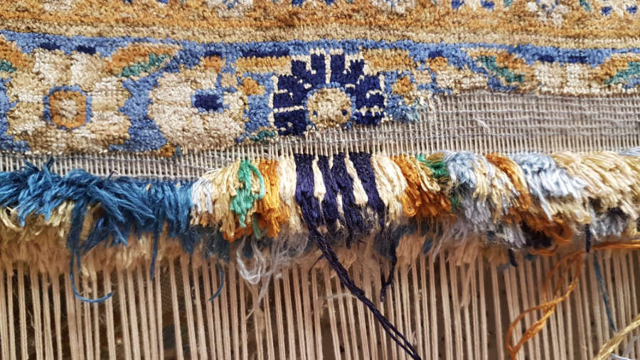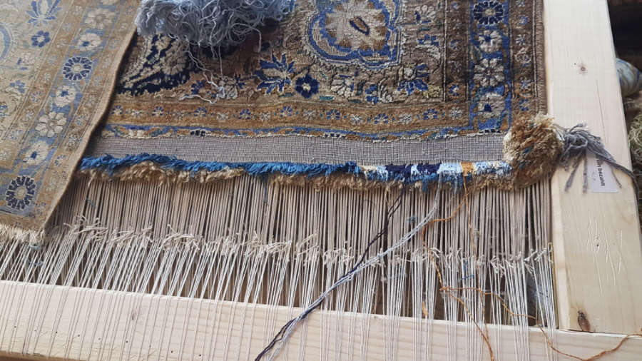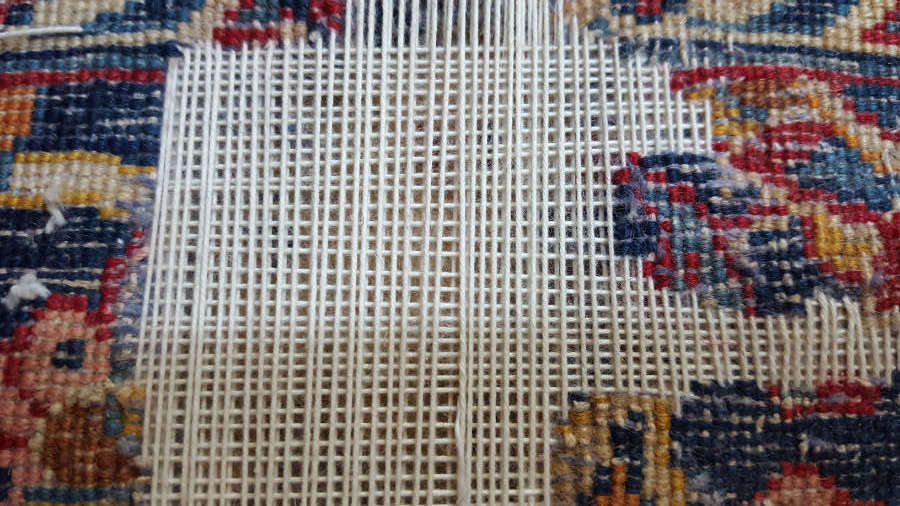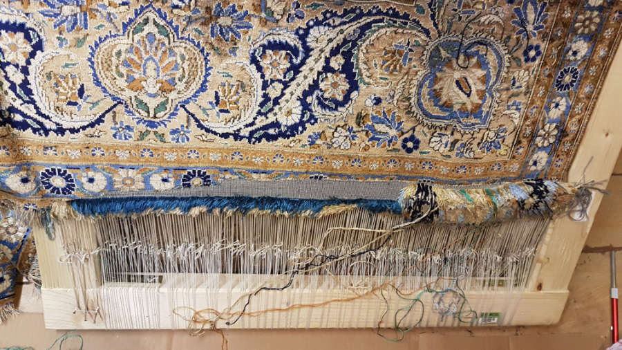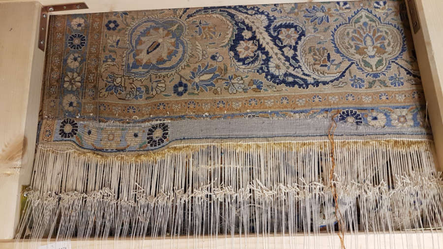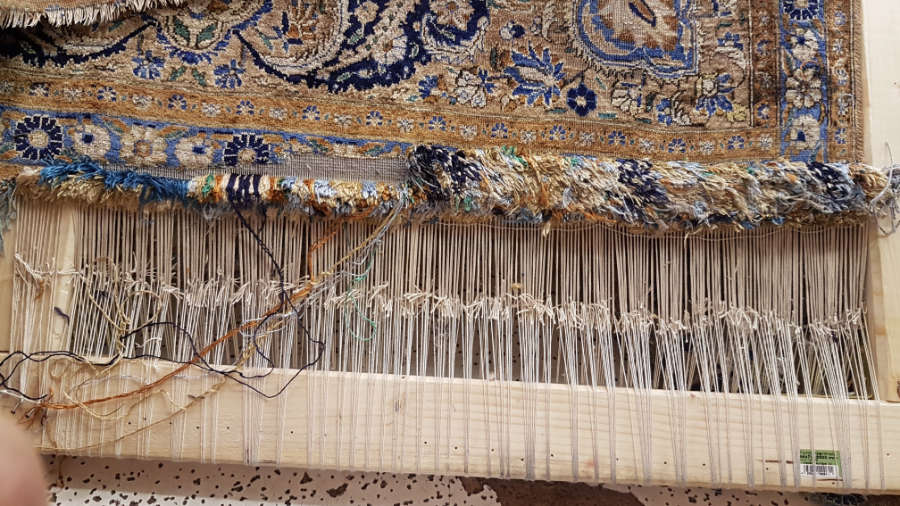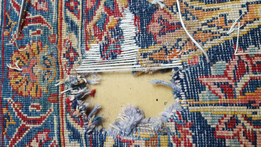 - Wir ziehen neue Webfäden an den beschädigten Bereichen.