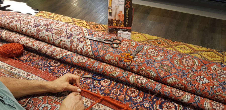 Wir bessern Teppichkanten aus und stellen schöne, neue Kanten her. Diese können wahlweise aus Wolle oder Seide gefertigt werden.
